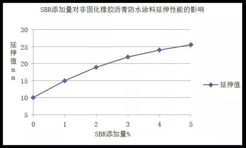 3.SBR对非固化橡胶沥青防水涂料延伸性能的影响